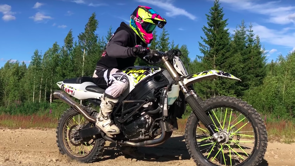 That's what Finland's Stunt Freaks Team have done, taking a GSX-R1000 sport bike and converting it into a dirt bike by adding motocross long travel suspension and tires.