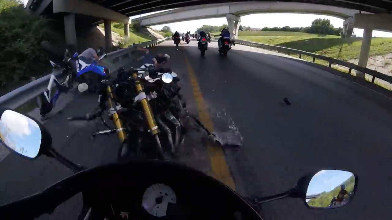 WHILST on a group ride in America, one member, who was clearly not paying attention, went straight into the guardrail. In turn, the following motorcyclists behind piled up, accumulating a hefty repairs bill. Luckily, all the riders appear to have got off lightly despite their rogue road positioning and lack of protective gear - Maybe a lesson learnt!