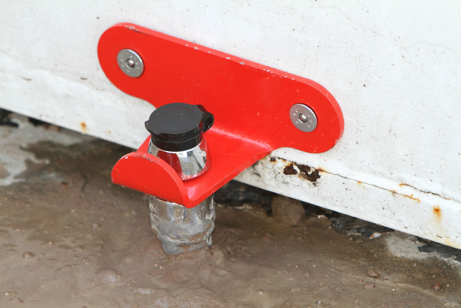 Make sure the lock still lines up, then place the ground section into the hole, and pour your ready-mixed concrete around it. Make sure it's held straight until the concrete sets. Now, you can fully tighten the door lock bolts, and you're all set.