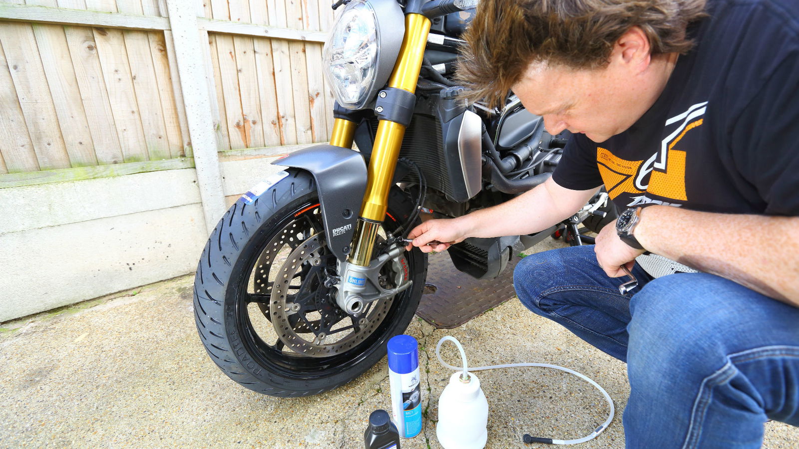 HYDRAULIC brake setups are excellent reliable systems these days, and generally get by without too much in the way of regular maintenance. But over time, the hydraulic fluid inside the lines and calipers absorbs water from the atmosphere, and needs refreshing. Bleeding the lines with fresh fluid every six months or so can restore feel and power – and if you do any work on the brakes, like swapping lines or replacing seals, you need to bleed all the trapped air out after the work.