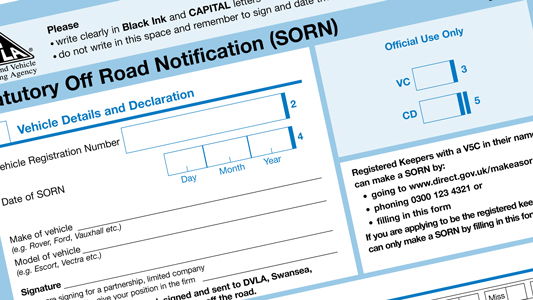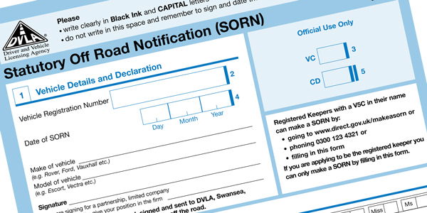 You can make a SORN online if you are the registered keeper of the motorcycle or scooter. You will need to know your registration number and the reference number on your V5C, or the V11 reminder reference number. You must apply by post if you're recently registered as the keeper or not yet registered.