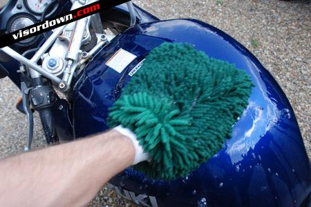 Once it's clean and dry, even just a can of Mr Sheen will add some shine – but a proper bike polish will do even better. Concentrate on obvious parts like the fuel tank and front fairing. Metal polish will lift tarnish and deposits on exposed metal bits like exhaust headers and silencers.