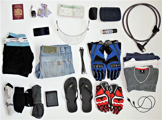 The kit above is exactly what I took with me on my 7-day 3,200 mile round trip from London to Morocco. I'm not saying it's the minimum you need to take, as that's bound to provoke a response from a reader who's been around the world on two wheels with just a pair of Y-fronts and a toothpick but this is a tried and tested formula that worked for me.