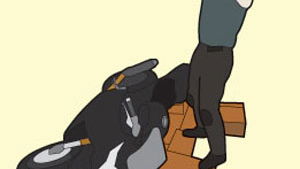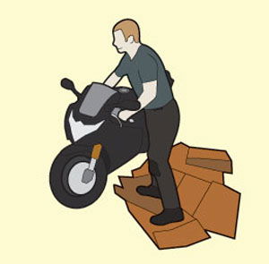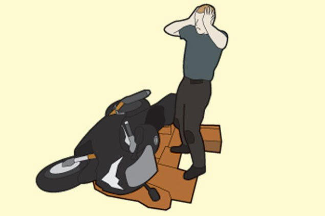 1. Check the bike over before you go any further. If there’s oil pouring out of the engine, then you don’t want to slip on it. Similarly, that soothing B&H might not be quite so cathartic if the fuel tank is ruptured. So, you’ve ascertained that you and the bike aren’t broken – let’s lift.
