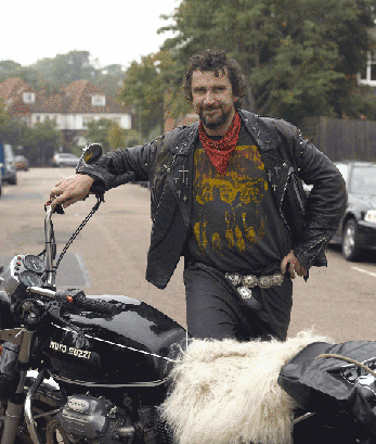 I've been riding since I was about 17. Just little 50cc bikes and 125s, though. When I was a kid you could ride them without a licence. And I've got a Peugeot scooter now that I use to get around town. I've never had a proper bike though, as I only passed my test just before filming on this movie began, believe it or not. So I've had my licence for seven weeks. The test was bloody hard. I did one of those five-day courses with the test at the end. The U-turn was a real bugger. So the Guzzi is the first proper bike I've ever ridden.