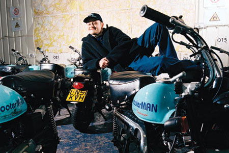 The motto is 'You drink, we drive'. You can go out straight from work and drink without worrying about your car - we drive you home in it. You phone the booking office to register as a customer - it's free to join - and pay the fare in advance. The booking office gives the client a call 10 minutes before the rendez-vous with Scooterman in case they're too drunk to remember. Then Scooterman meets the client who leads him to the car. The scooter's seat, tank and forks come off, we wrap the four main parts in synthetic bags and load them in the boot. You throw your bike clothing in the back too or you'll start to overheat while driving.