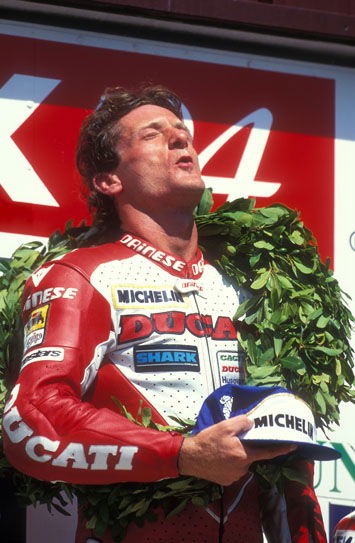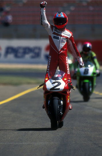 "In '94 I can't remember feeling much pressure at all. I'd won 10 races the year before on the 888 and was confident that if the new bike did what I wanted I'd win on it. In a way the pressure increased after securing my first title. The expectation, especially from myself, was more somehow."