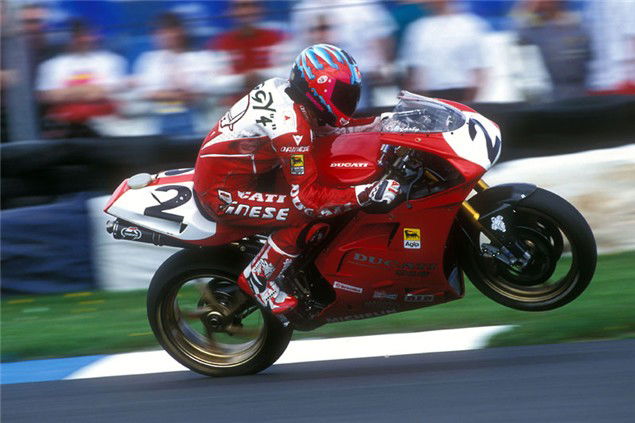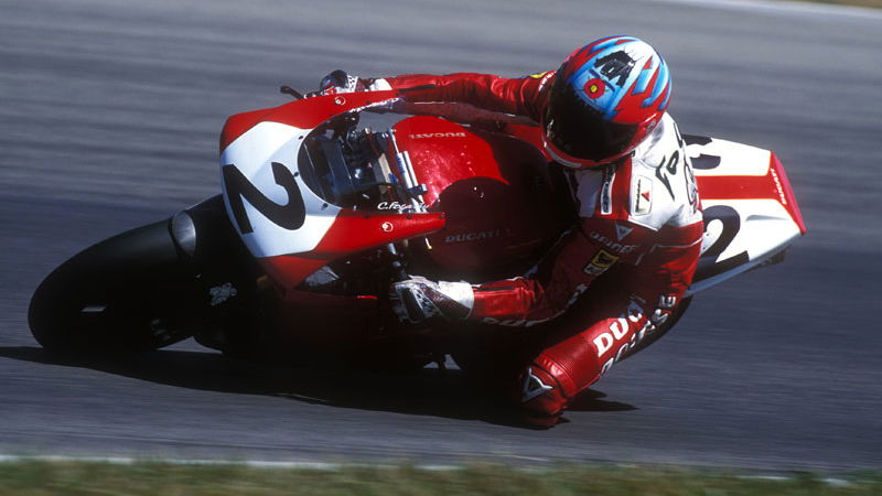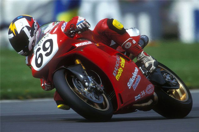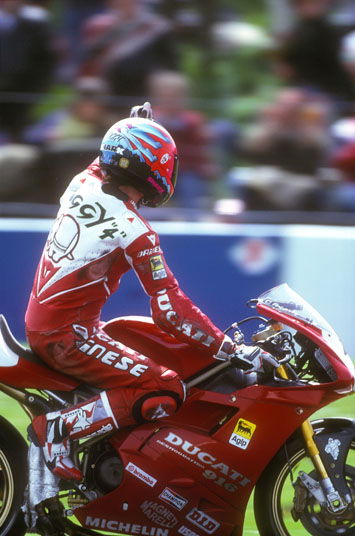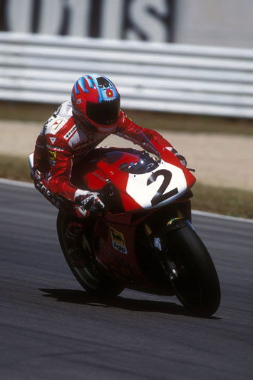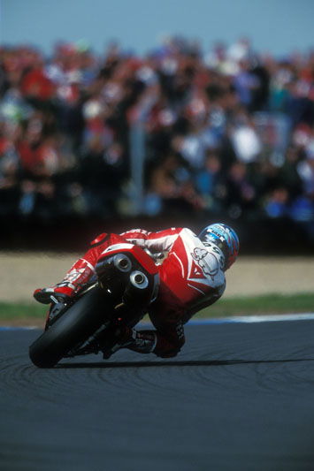 "Initially the 916 was short and nervous and didn't suit my style. I need a bike to be stable, even at the expense of turn-in, so I can run high mid-corner speeds. That became one of my strengths. I remember saying I could do better lap times on the old 888 for just this reason.
