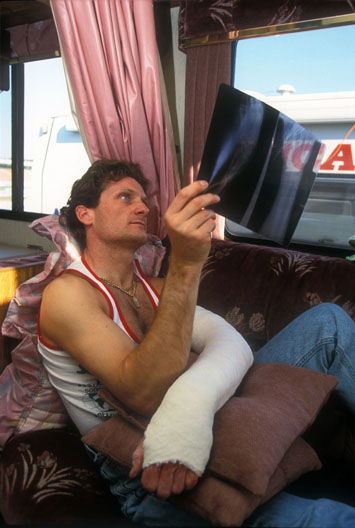 "On paper, one of my main rivals should've been former champion Doug Polen, on the Honda. But he just never clicked with the bike, managing only three rostrums. My main opposition was instead Scott Russell on the factory Kawasaki, who'd beaten me to the title in '93. He had the better start to the year, with a win in race two at Donington and then a double at Hockenheim, helped by my breaking my wrist in practice. Another win and a second at Misano gave Russell a fair lead.