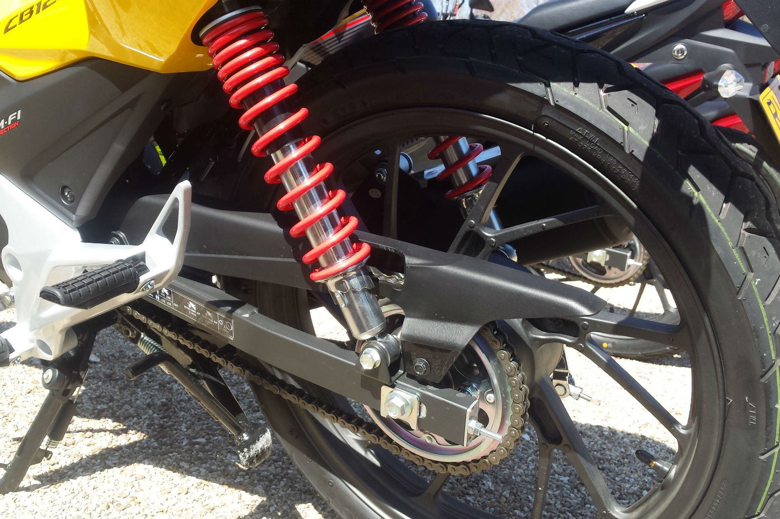 The CBF125's Continental tyres have been swapped for Chinese-made CSTs, with a skinnier 90/90-section rear instead of 100/90. I didn't have any problems with them but I wouldn't like to explore the limits. The fact the new model has been given 18-inch wheels instead of 17-inch will also limit the choice of alternative rubber, at least until tyre makers catch up.