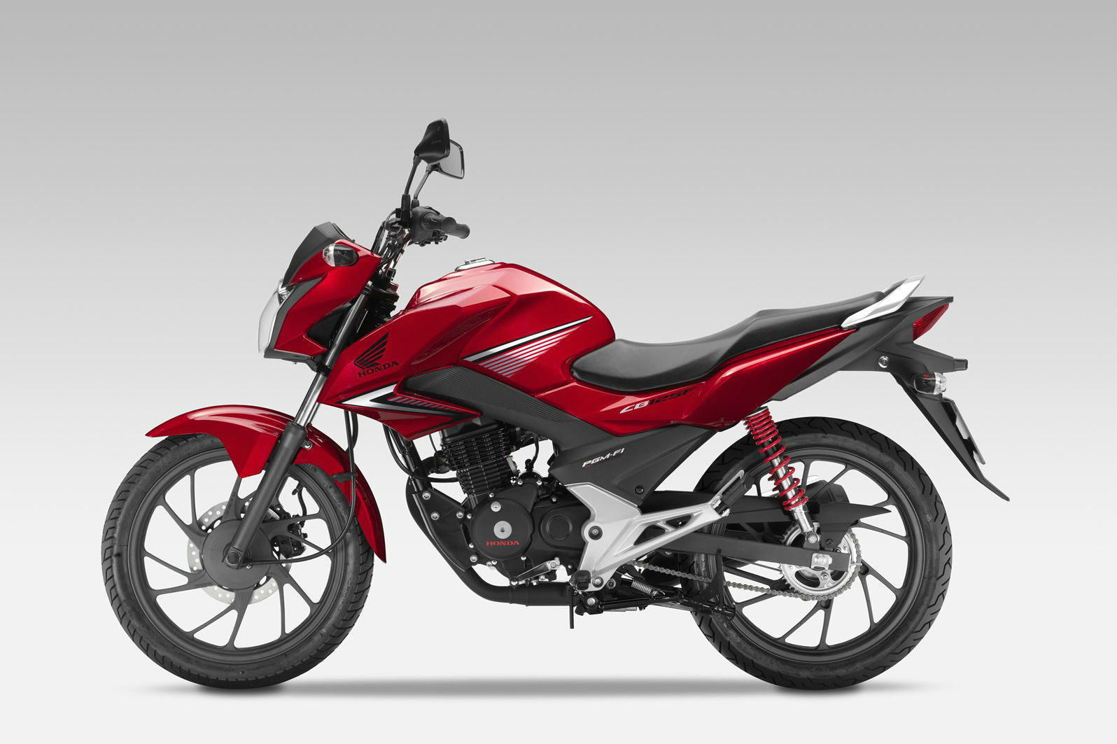 Peak figures are less though. The CB125F makes 10.6hp and 7.5lbft, compared to the CBF125's 11.2hp and 8.2lbft.