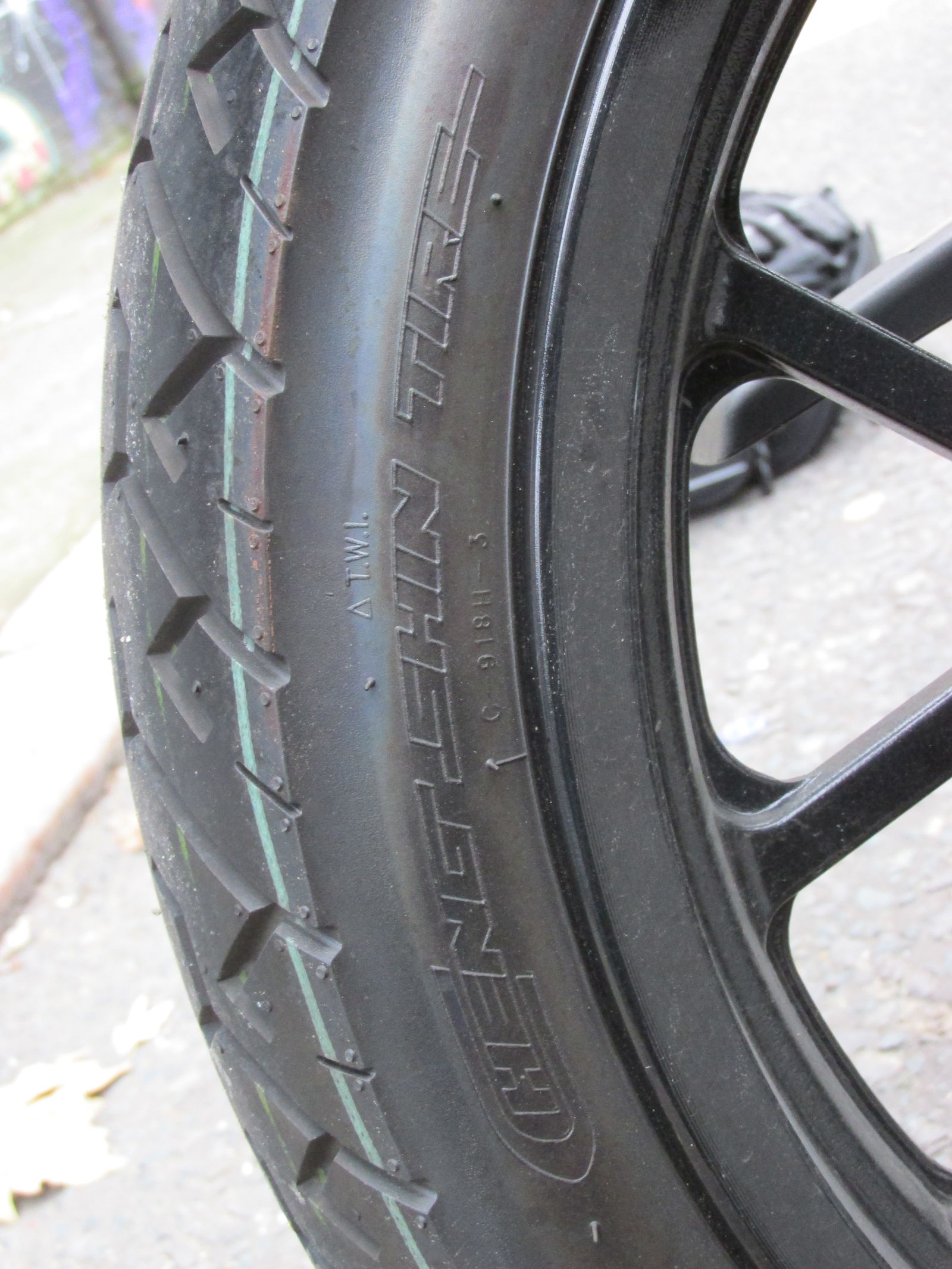 The single front brake disc and twin-piston sliding caliper feel a little wooden but have the power to stop the CK1 quickly given a firm pull of the lever. Two fingers are sufficient so long as they're positioned for good leverage.