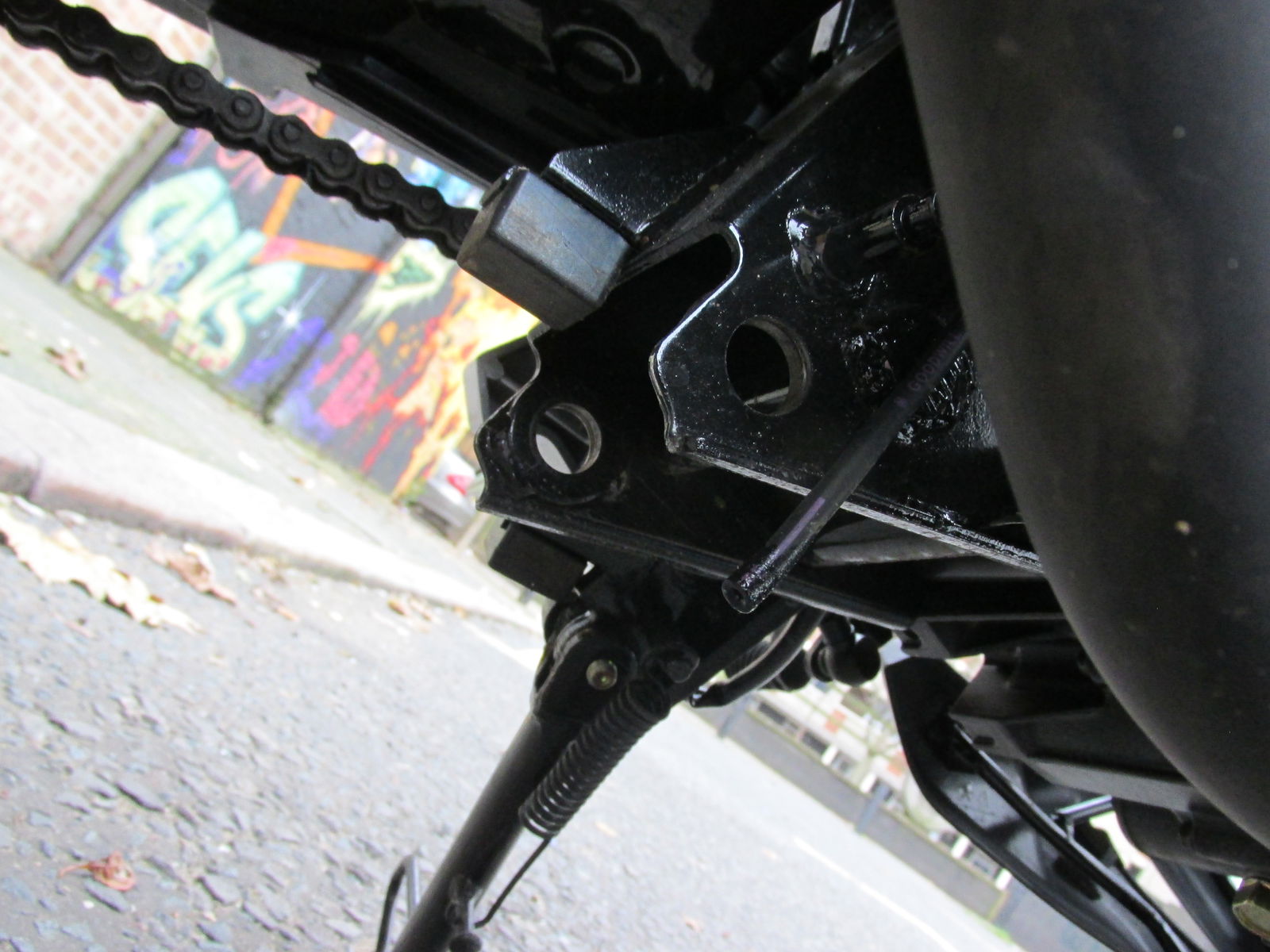 Those large plastic panels which extend from the rider’s pegs to the tank hide a startlingly ugly frame design. A single vertical frame tube behind the engine meets a large box-shaped section of steel onto which the swing-arm and engine is bolted, the latter acting as a stressed member.