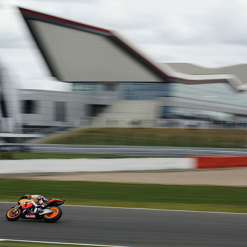 It’s easy to low-side here so I wait until I’ve passed the slight crest before opening the throttle gradually and making a long sweep towards the outside of the track and back to the final apex at the pitlane barrier. Make sure you clip the apex here bang on the money – if you don’t you’ll run hopelessly wide, lose loads of time and almost as many positions.