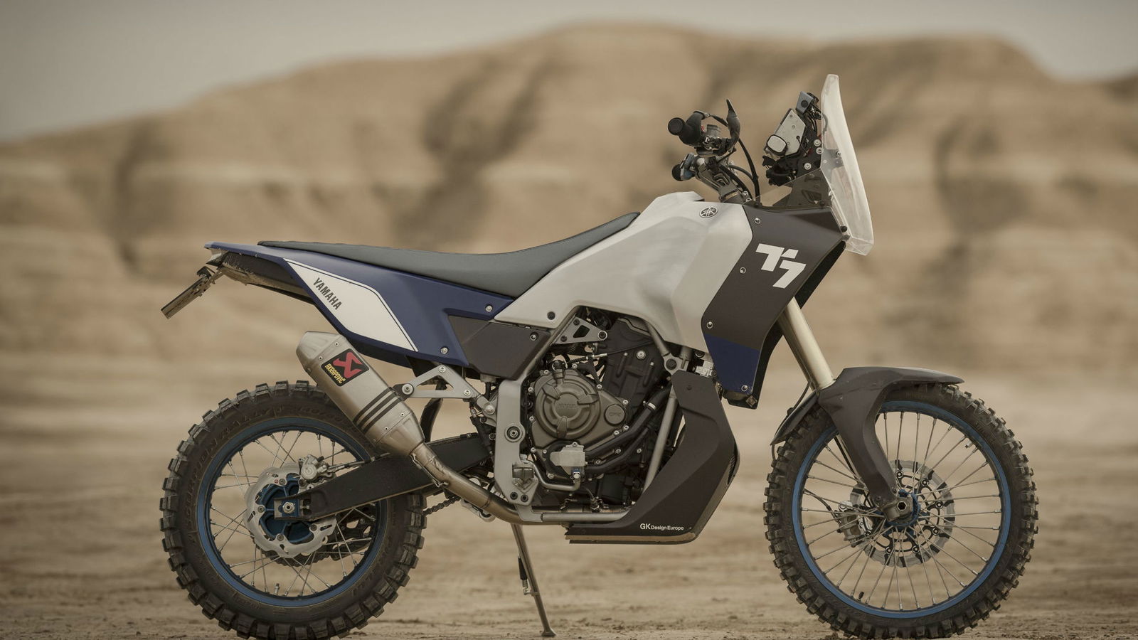 Inspired by the XT-660Z Ténéré but powered by the parallel-twin plant from the MT-07, the T7 looks every bit the rally-adventure off-road weapon.