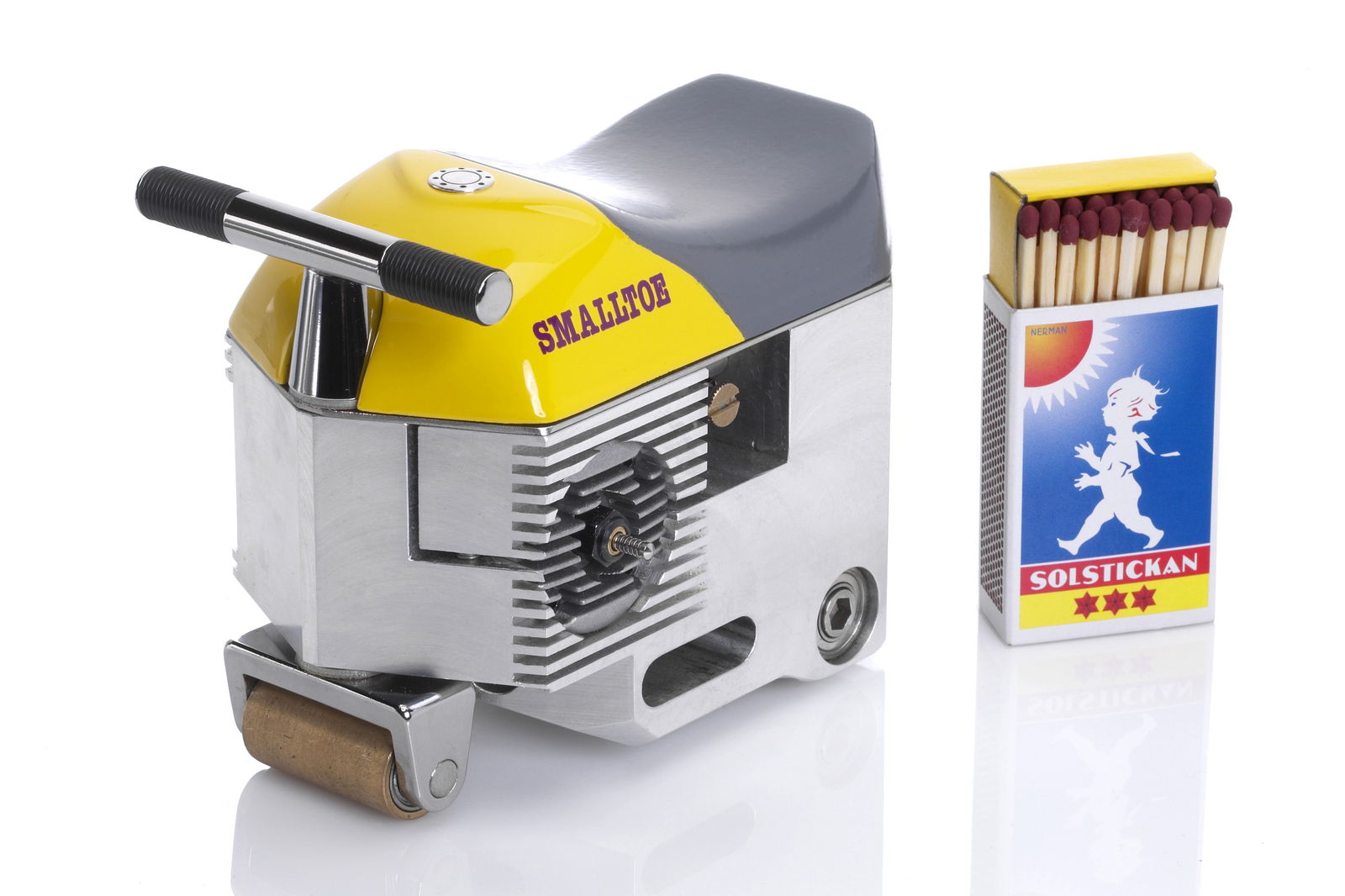 Sweden’s Tom Wiberg once held the record for the world’s tallest motorcycle with his Jaguar V12-engined ‘Big Toe.’ It was beaten for that record some years ago but the companion piece – Small Toe – still remains the world’s smallest rideable motorcycle. So small that to ride it you need special boots with built-in pegs that slot into the holes in either side, it’s powered by the sort of engine you might find in a radio controlled car and made from a machined block of aluminium with roller bearings for wheels. Yes, it can be ridden but despite being handily pocket-sized, it’s lacking a practical purpose.
