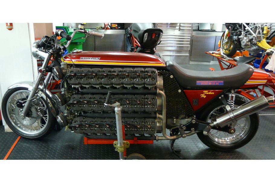 We’ve covered the Whitelock Tinker Toy – built by Simon Whitelock of the Hertfordshire Superbike Centre – before, but it’s unlikely to be beaten on cylinder-count in the near future. It’s referred to as a 48-cylinder thanks to a custom engine made from six eight-cylinder banks, each using cylinders from Kawasaki KH250s, 16 of which gave their lives so this beast may live. However, there’s actually a 49th cylinder in there, since the main engine’s starter motor is a separate 50cc single! Have a closer look, and see it run, here.