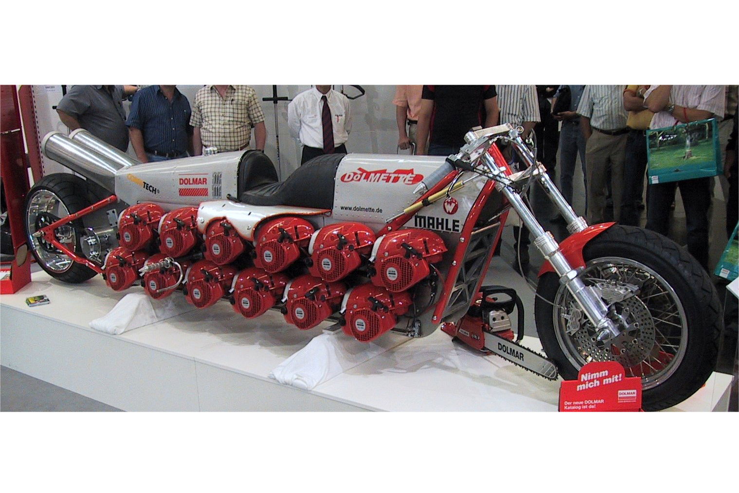 There might be the guts of 16 KH250s in the Whitelock Tinker Toy but the Dolmette uses no fewer than 24 separate engines. Each is a 78cc, two-stroke Dolmar chainsaw motor, linked together to a five-speed gearbox from a Harley-Davidson. Practicality is lacking, particularly since each of the motors needs to be individually pull-started… Oh, and for all that noise and effort it’s still only making around 170bhp from 1.9 litres.