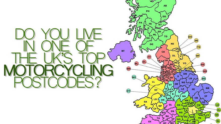For this top ten we’re naming the ten postcode areas with the highest motorcycle populations from a total of 3,064 postcode districts. Obviously the square-mile size of each postcode differs but then so does the population density.