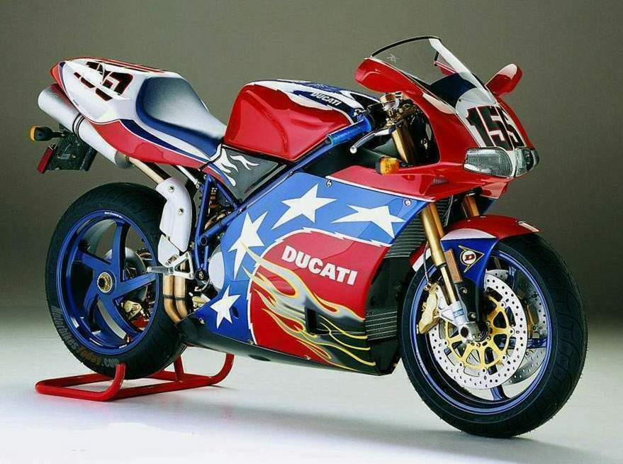 While marketed as a paint-and-bolt-ons limited edition, the 996 Foggy Replica is actually a full-on homologation bike. The initial run of 202 (200 for sale in the UK only, one for the factory and one for Carl) was used to homologate a redesigned trellis frame that made space for a larger airbox. Made in 1998 it also got Marchesini wheels on top of the normal SPS kit. A second run (150 bikes) was made in 1999 and a third (another 147) for 2000, this time being sold throughout Europe.
