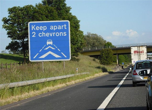 Not sure how to do it? Picked a fixed point in the road (the blue sign in the picture, for instance), start counting when the vehicle in front passes it. If you've reached it before you've counted ONE THOUSAND, TWO THOUSAND then you're too close. Drop back.