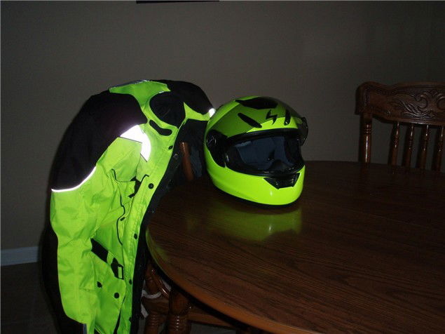 Research has shown that riders who wear brightly coloured helmets and protective clothing substantially reduce the chances of being involved in an accident involving another motorist. If you're not that keen on the DayGlo look then opt for a bright helmet and clothing.