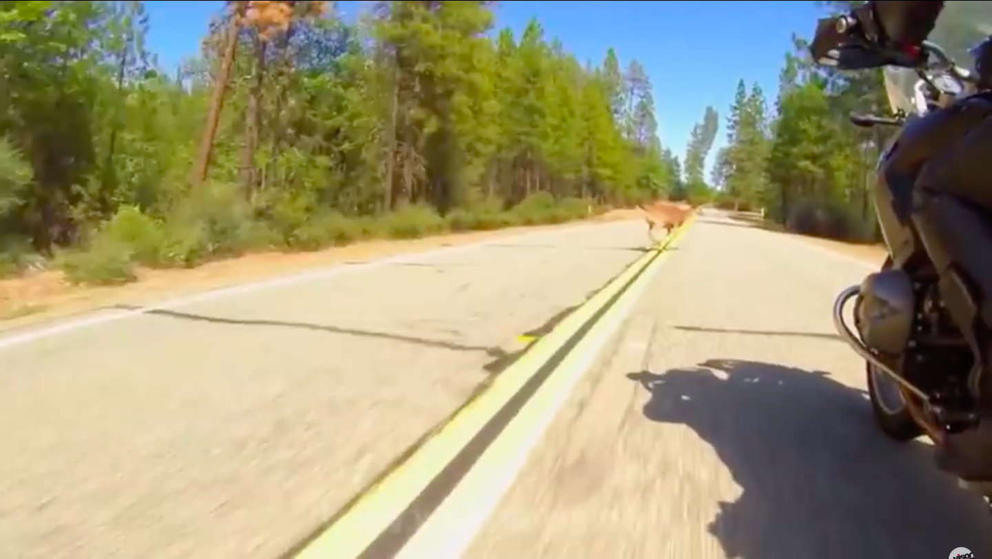 Watch our for that ...f*** too late. This has to be one of the worst motorcycle collisions with a deer, or anything, we've ever seen. Not sure what to suggest to avoid this, surely it's just straight up unlucky?