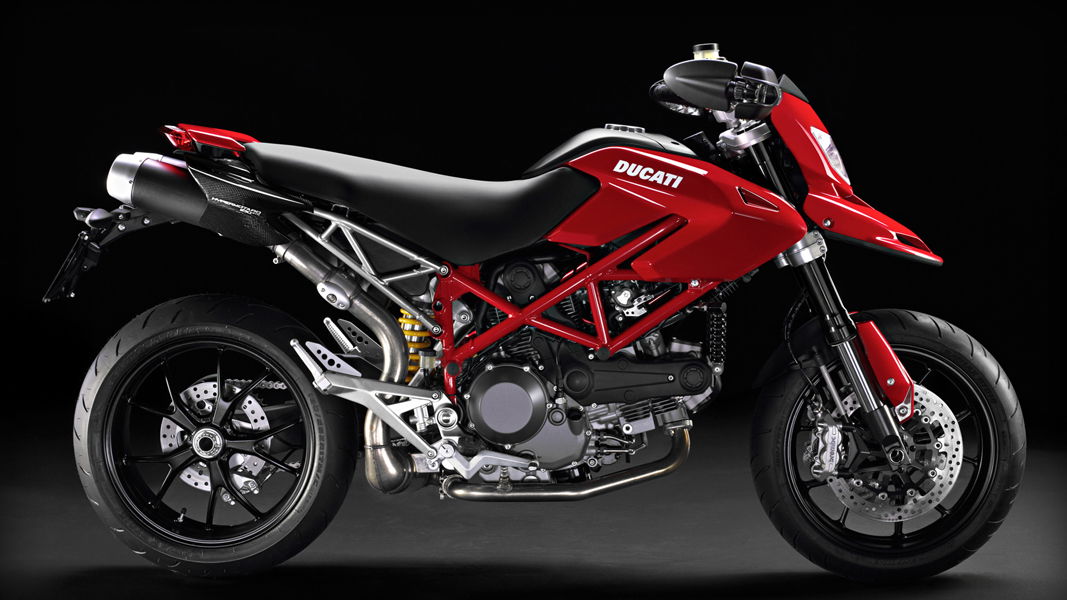 Yes, all Hypermotards like to wheelie, but the 1100 is by far the best. The old-school air-cooled engine has a wealth of torque and its characteristics offer a much smoother delivery than say, the Tuono Factory, making it easy to make adjustments as you go. The Hyper 1100 eats up straights on the back wheel, just watch out for oil starvation problems.