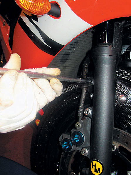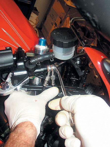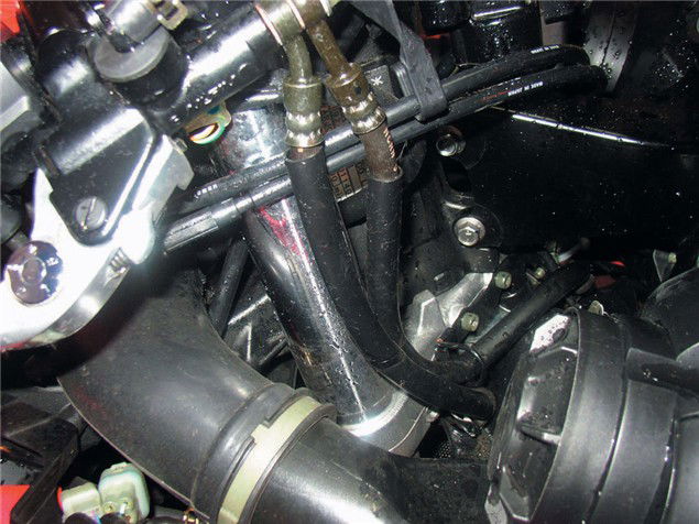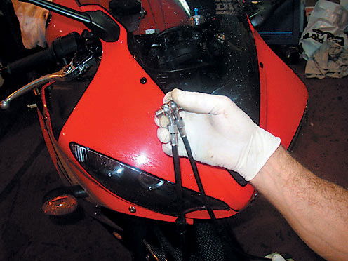 1. Study the routing of your standard hoses and the angle of the fittings. Removing the inner fairing panels on this R6 gave better access.