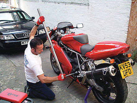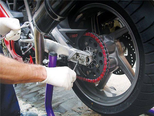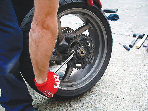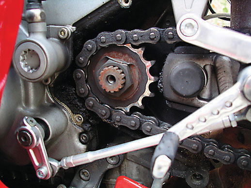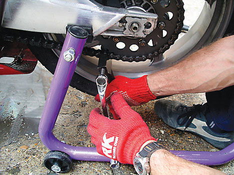 4 Front sprocket changed (not shown... ) and it's time to pull out the rear wheel. If you get stuck, refer to the November 2004 issue's in-depth feature on wheel removal.