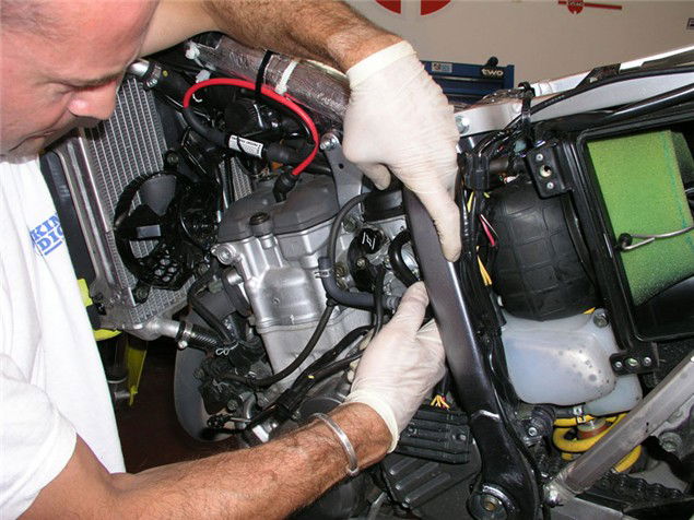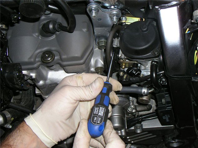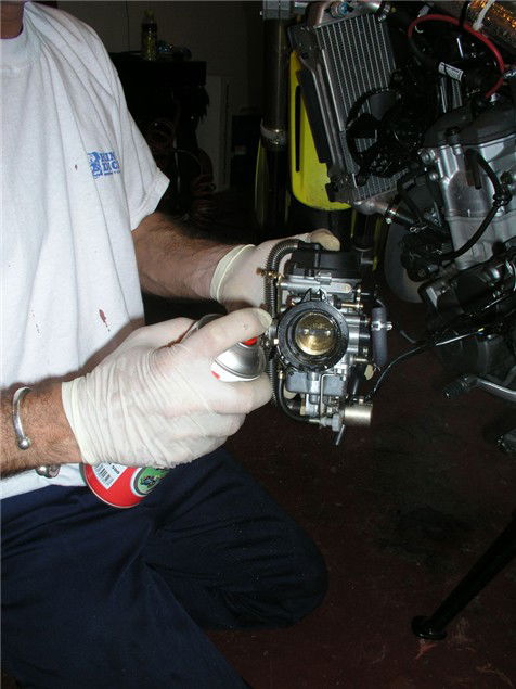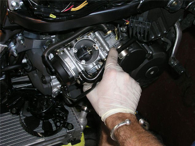 1 Get all the necessary bodywork/tank/side panels out of the way and put them somewhere safe. Now loosen the jubilee clips that hold the carb to the inlet manifold and airbox.