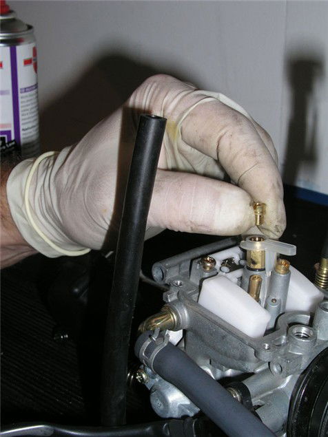 10 Unscrew the main jet and check it doesn't have any dirt stuck in it. Blow through the jet then give it a squirt of carb cleaner to be sure it's clean.