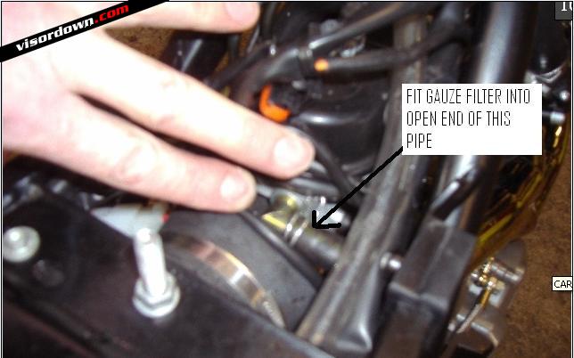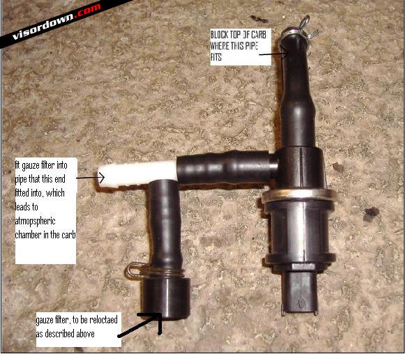 and removing the gauze filter from the small link pipe and fitting it to the section of tube exiting from the side of the carb which vents the atmospheric chamber in the carb.