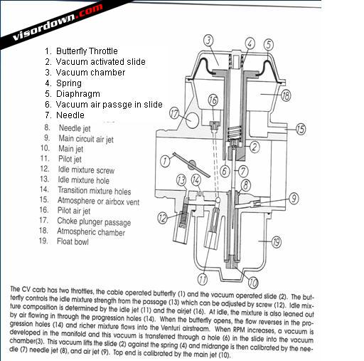Item 18 is the atmospheric chamber which needs to be vented, the sketch is NOT a Duke II carb, but is a Mikuni CV carb, so the principles are the same.