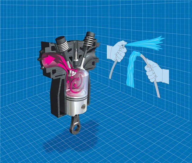 A high velocity gas flow has other advantages. One problem encountered with a relatively slow-moving gas charge is poor atomisation and 'drop out', where droplets of fuel actually fall out of suspension. To burn effectively, the incoming fuel/air has to be well mixed as it enters the combustion chamber. If it isn't, or if fuel is dropping out of suspension in the inlet tract and not finding its way into the cylinder at the right time or with the right amount of air, then combustion - and power - will be affected.