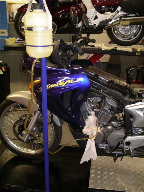 2 If your bike has a vacuum tap you'll need to suck the air out of the take-off pipe and clamp it