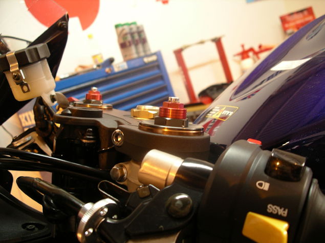 First, get the bike on a decent set of paddock stands. The abba Superbike stand works best for us, supporting the bike at the swingarm pivot.