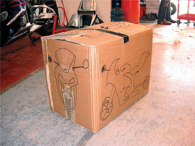 It is essential to have a clear and clean working area, a safe area to store the panels once they have been removed and somewhere the fixings and fasteners can be arranged in order. Tim's idea of sketching an outline of your bike on a box (see right) may sound over the top but it actually works.