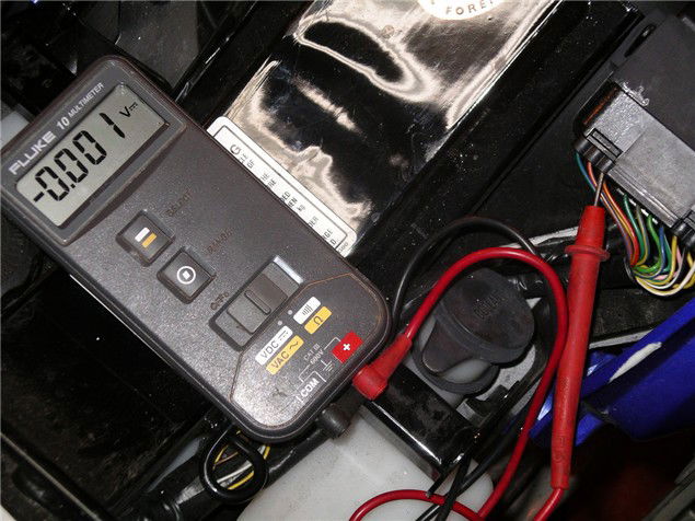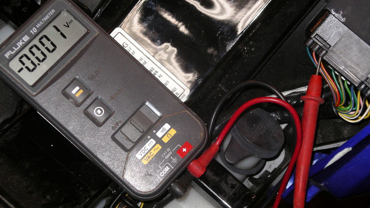 Set the meter to 'DC volts' and, with the engine running, hold the positive and negative meter probes on the corresponding battery terminals. Open the throttle until the engine is revving at around 3000rpm and note the reading from the multimeter. The system should be charging the battery at between 13.5 and 15 volts. If the meter reading is between these figures but the battery keeps going flat, it has probably reached the end of its life and will need replacing.