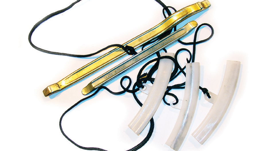 With the bead broken it is important to protect the rim before attacking it with tyre levers. The plastic protectors we used came as part of the kit from abba. Before proceeding, we tied the connectors together with a length of string to help retrieve them from the tyre if they fall inside. Now fit the protectors on the rim and use one of the levers to prise the tyre off - sounds easy, but a bit of effort may be required at this point so make sure the tyre lever has a secure purchase. Once the tyre has been hooked off the rim initially, hold the first lever in place and use a second one to lift the tyre off the rim a few inches from the first lever, repeating the process while moving the protectors around until one side of the tyre is completely free. With a protector in place prise the lower part of the tyre off the same side of the rim. The rim can now be pulled clear of the tyre. (Temperature can make quite a difference to how easy this all is. If in doubt, whack up the central heating and do it in the living room.)