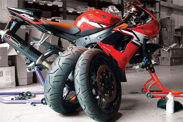 As ever, you'll need to make sure you've got all the tools to hand before starting work. Many sports bikes' front wheel spindles need a large hex bit - up to 24mm on some bikes - to undo them (Motrax sell a 'Spindle Key' for £9.99 which fits most bikes, have a look at www.motrax.co.uk). You'll also need a fairly large socket to undo the rear wheel spindle nut (and maybe a special tool if you've got a single-sided swingarm Ducati or Triumph), something to undo the front calipers, a torque wrench (in an ideal world) and a spot of grease.