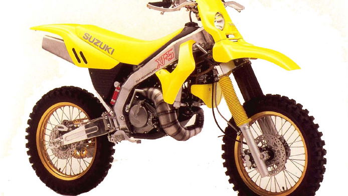 For a while, two-wheel-drive concept bikes were all the rage, both as off-roaders like Suzuki’s 1991 XF5 (top) and as high-performance road bikes like the same firm’s 1986 Nuda (above).