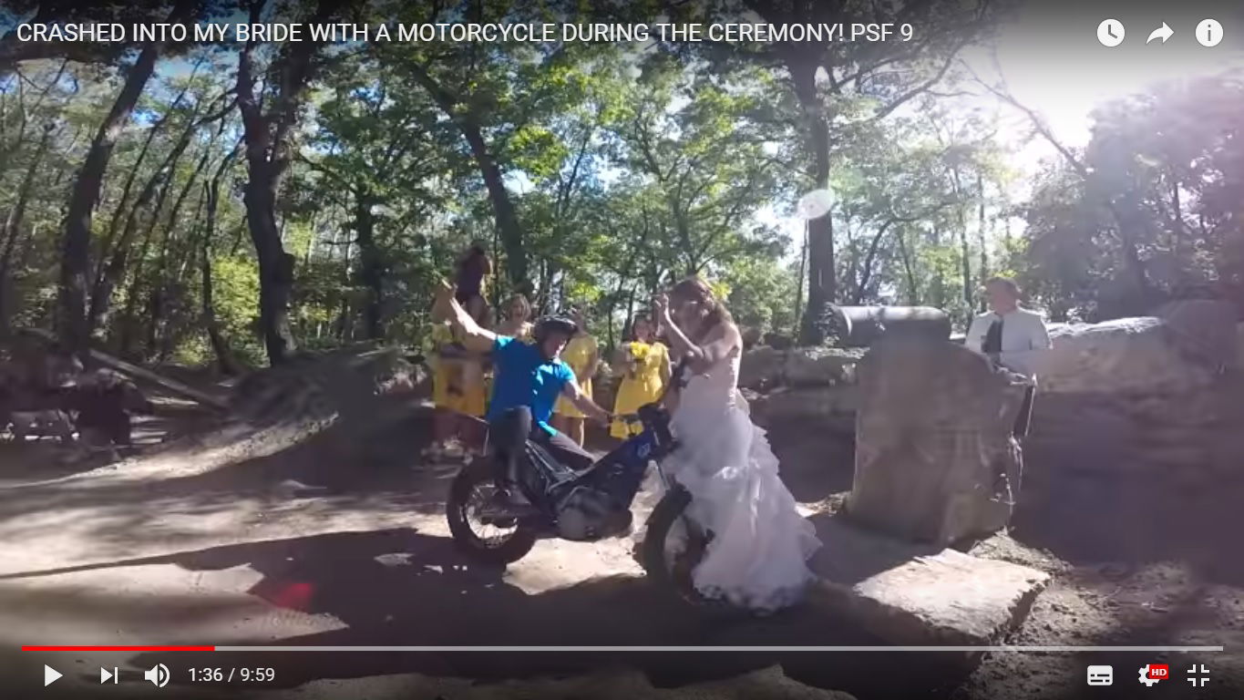 Watch: groom crashes motorcycle into bride at wedding