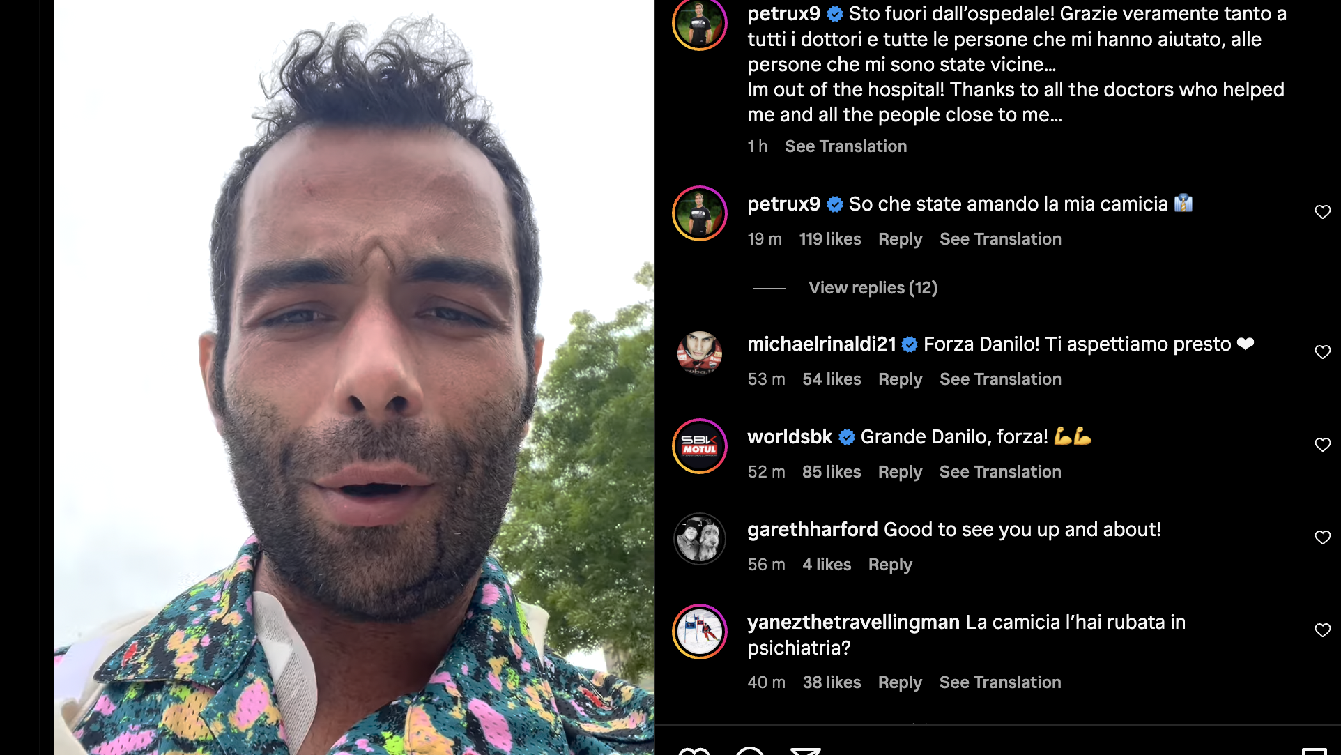 WorldSBK star Danilo Petrucci has spoken to fans via social media for the first time since suffering injuries in a motocross training crash